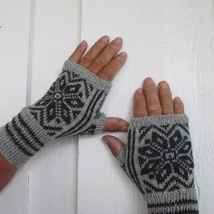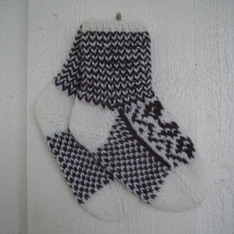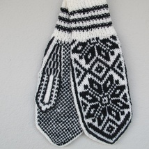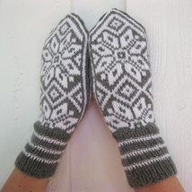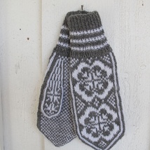 Selbuvotter i lys grå og hvitt str 1-2 år
