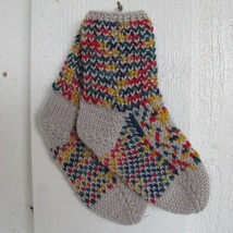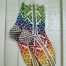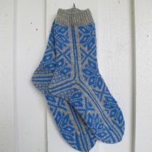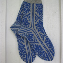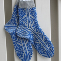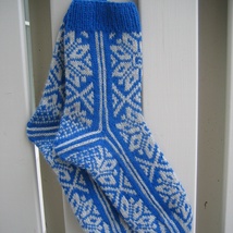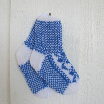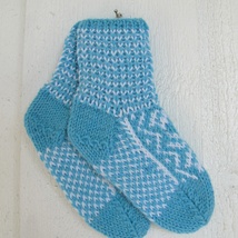 Selbusokker i hvitt og flerfarget blått str 1-2 år