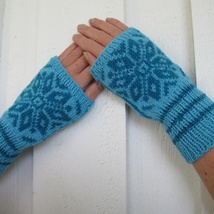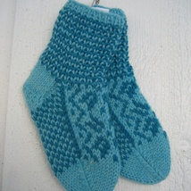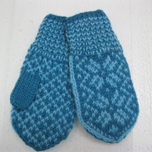 Selbuvotter i mørkblå og turkis str 1-2 år