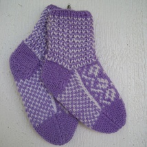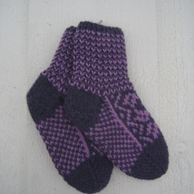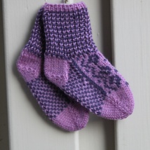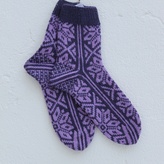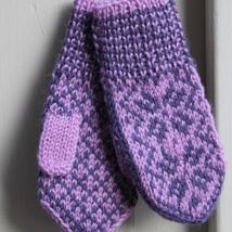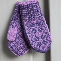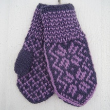 Selbuvotter i lys og mørk lilla str 1-2 år