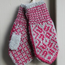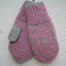 Selbuvotter i grå og sterk rosa str 1-2 år