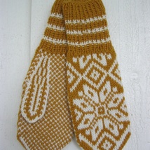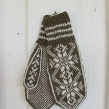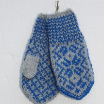 Selbuvotter i brunt og lyseblått str 0-1 år