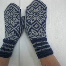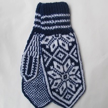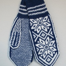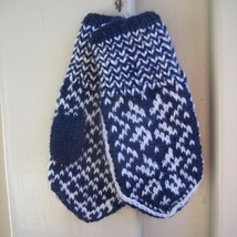 Selbuvotter i mørkeblå og hvitt str 0-1 år