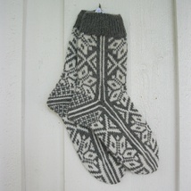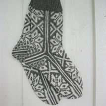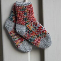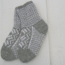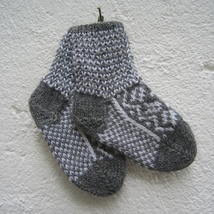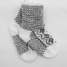 Selbusokker i lysegrått og hvitt, str 1-2 år