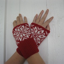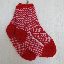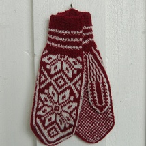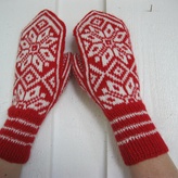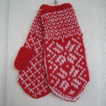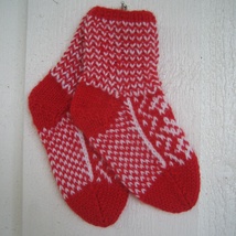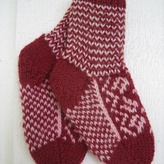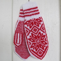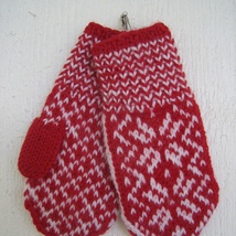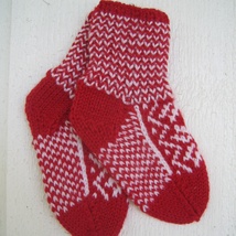 Selbuvotter i dyp rød og hvitt str 0-1 år