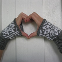 Selbuvotter i lyse grått og hvitt, str 1-2 år