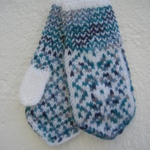 Selbuvotter i hvitt og flerfarget turkis str 0-1 år