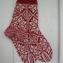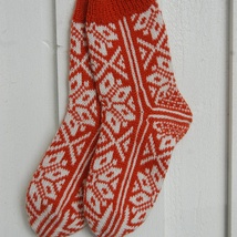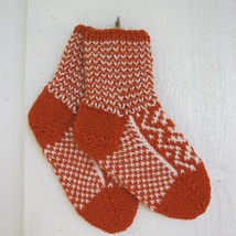 Selbusokker i dyp rød og hvitt str 0-1 år