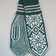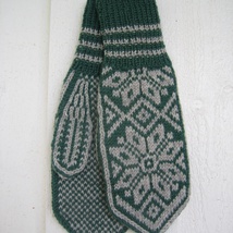 Selbuvotter i flaskegrønn og krem str 1-2 år