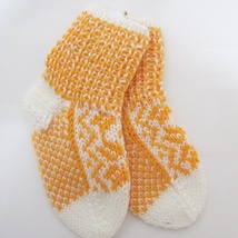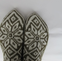Selbusokker i flaskegrønn og krem str 1-2 år