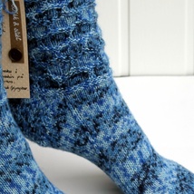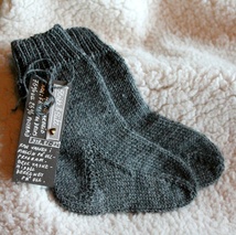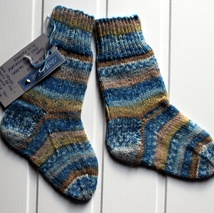 Sokker i tynt superwash ullgarn/forsterket med polyamid. Str.21-22