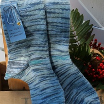 Sokker i tynt superwash ullgarn/forsterket med polyamid. Str.20-21