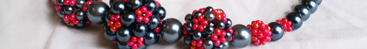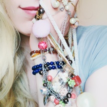 Her finner du håndlagde smykker og tilbehør i materialer som: perler i glass, plast og stein, forgylt metall og ekte sølv og skjell, m.m.