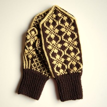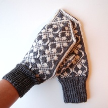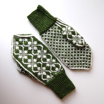 Tovede damevotter, naturhvit og grønt
