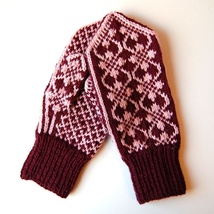 Tovede damevotter i bringebærrødt og rosa