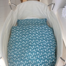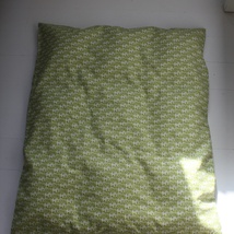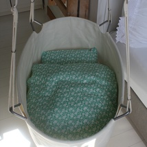 Thelma sengetøy, grønt med små hvite retroblomster 65x80