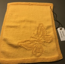 Strikket pose med sommerfugl