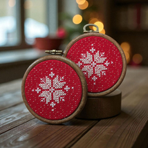Her finner du for det meste broderier, for ramme, på smykker og kort, og håndstrikket dekor og klær.