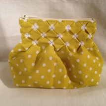 Gulgrønn polkadot... sminke/penge pung - januarsalg 30%