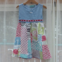 Kjole Victoria i blått og retromønstret bomullsstoff str 2 år