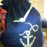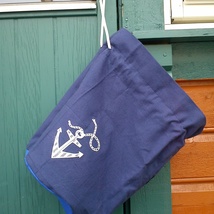 Bag i "seilsekkstil" med mange innvendige lommer i maritimt stoff