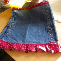 Dongeriskjørt med søt hjertebord til jente på 7-8 år