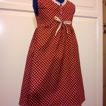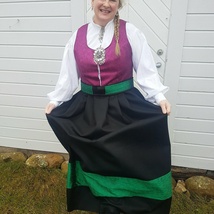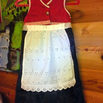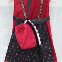 Barnebunad/festdrakt i rød og svart helforet Jaquard med blondeforkle str 86/92