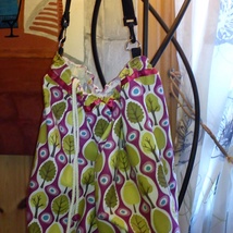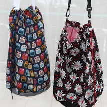 Stor og romslig bag i uglestoff med mange innvendige lommer