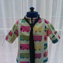 Luftig Bondeskjorte til gutt Småruter med busser str 4 år - SOMMERSALG - 30 %