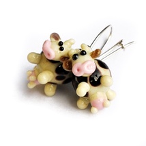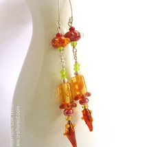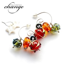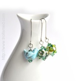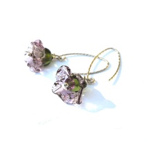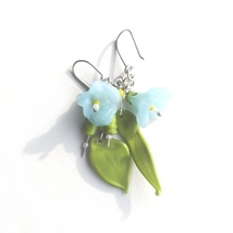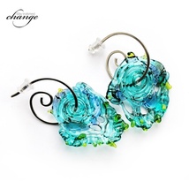 Øredobber med blomsterløv, fargeskiftende lampwork glass