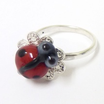 Sølv ring med marihøne og håndlaget filigran