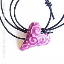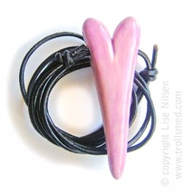 Rosalilla snurrehjerte i lærsnor