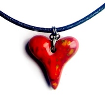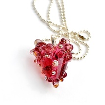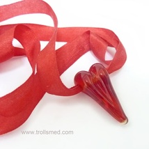 Lite helrødt lampworkhjerte - JULE-100 kronershjerte!