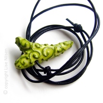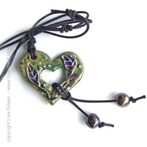 Grønt snurrehjerte, smykke av porselen