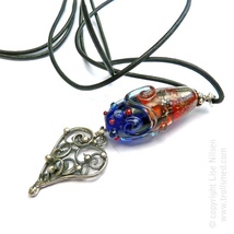 Vakkert filigranhjerte og lampworkperle