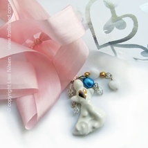 Porselensengel i silkesnor 3, smykke