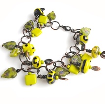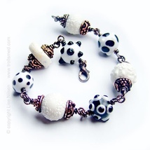 Lekkert sorthvitt armbånd - Porselen, lampwork og kobber