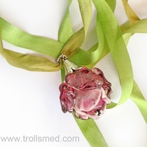 Håndlaget glass, rosa rosenknopp