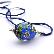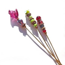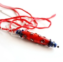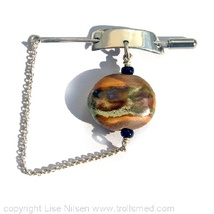Håndlaget sølvnål med håndlaget lampworkperle