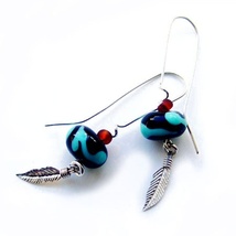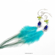 Lange øredobber med sølvfjær og håndlagde glassperler