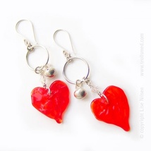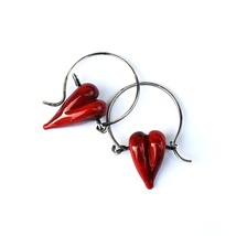 Røde hjerter øredobber lampwork SALG 5 dager