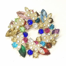 Herlig oval blingbrosje i grønt og rødt