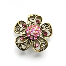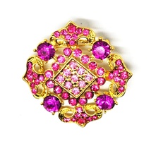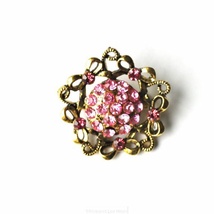 Blingbrosje, gullfarget metall, nydelig rosa blomst