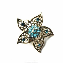 Blingbrosje, gullfarget metall, turkis bling i blomst