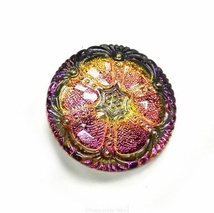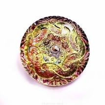 Vakker rosa/grønn/gyllen tsjekkisk glassknapp, håndmalt