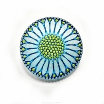 Vakker tsjekkisk turkis blomsterglassknapp, håndmalt