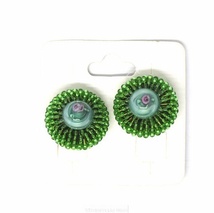 Øreklips, retro småperler, grønne med lampworkperle