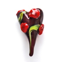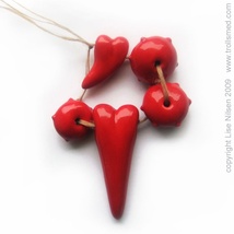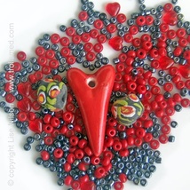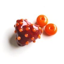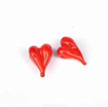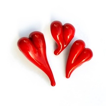 Håndlagde lampworkhjerter - 2 stk opakrød(sett 2)