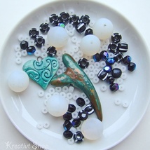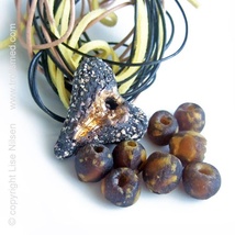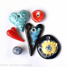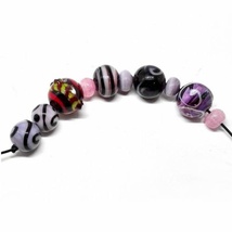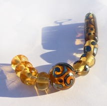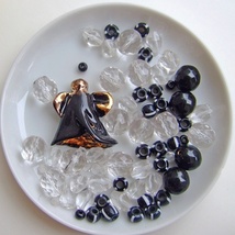 Sett - gyllent og sølvsvart, lampworkperler til smykkelaging