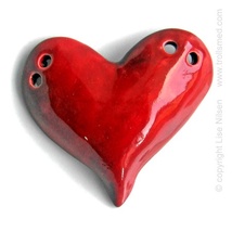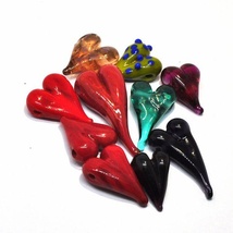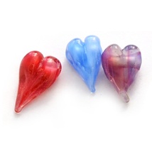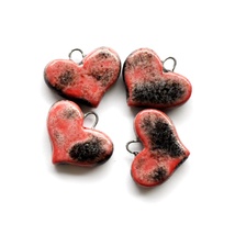 Håndlagde lampworkhjerter - 2 stk opakrød